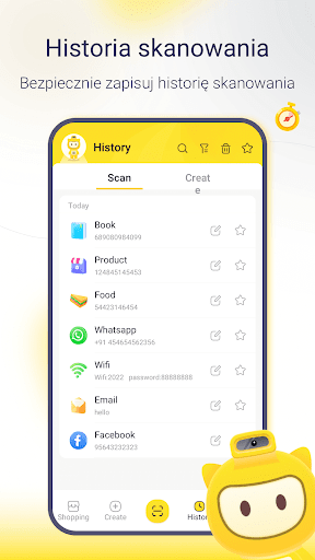 Zapis wszystkich zeskanowanych i utworzonych kodów QR jest zapisywany na stałe, a lista historii ułatwia zarządzanie i czyszczenie historii odwiedzonych lokalizacji i linków do kodów QR.