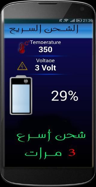 Are you tired of the joke Shipping applications? Are you tired with the long shipping time? Do you want the application you charge the device in minutes? Are you ready to ship too fast? Yes, this application is for you but for all Android users on Alsaida to Arabic and all those who wish to charge the phone or device's battery quickly fictional speed 3X