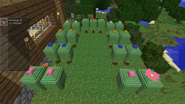 or Master Ball . It is possible to get all six pokemon. They will all appear in special balls-niches that you will see at the top right of your screen. To cause the desired pokemon you can by clicking on its image in the corresponding ball. To control the pokemon has a special panel that is displayed after the call creatures. Thanks to it you can issue commands such as attack or evade enemy attacks. If your pokemon are defeated in battle, he cannot die permanently. You will be able to restore using the PokeCenter . Another useful item that will add the mod Pixelmon for Minecraft PE is Pokedex .