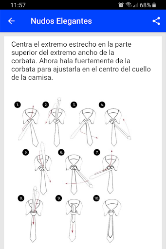 Con esta app puedes aprender fácil y rápidamente a hacer un nudo de corbata que te luzca elegante sobre tu camisa, aquí tienes un manual con instrucciones e imágenes para que aprendas en poco tiempo.