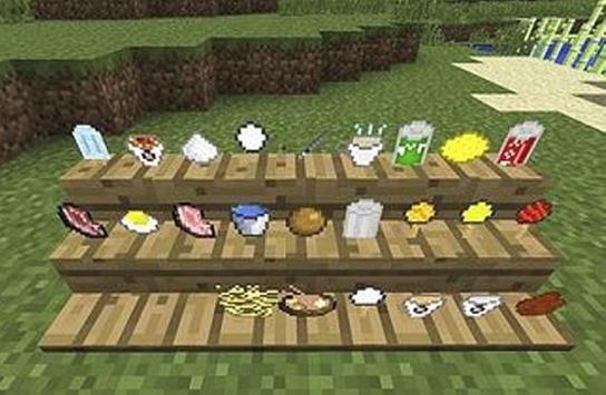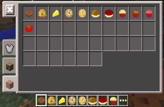 Food for minecraft is very important, because if your character is hungry, it’s not be able to restore his health. Food mod for mcpe will increase the variety of dishes that can be prepared in the game. After downloading of the mcpe mods food, you can prepare delicious sandwiches, muffins, ice cream and other food for minecraft. To start cooking mcpe food firstly, you need to make a pan.
