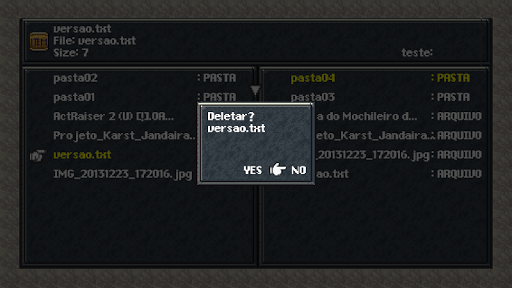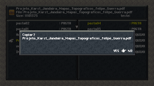 *Quadrado - Cópia o item selecionado (que está com a maõzinha em cima) para o item marcado (que está só em amarelo) da caixa oposta se este for uma pasta se não for cópia para a pasta pai deste mesmo item.