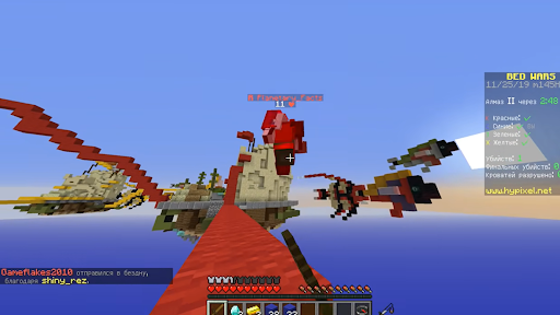 Bedwars dla Minecraft to bitwa na latającej wyspie. Na początku gry Bed Wars Mod wybierasz zespół. Po wyrzuceniu na wyspy mapy Bed Wars, musisz umieścić łóżko i sprawić, że blokuje się. W dalszym ciągu Wojna w bitwach Minecraft ma miejsce, głównym celem jest zniszczenie łóżek przeciwników, więc nie będą mogli być odrodzeń. Mods dla Minecraftu mogą dodać do Ciebie Jump Hulk, możesz skakać bardzo daleko. Minecraft Bedwars Nie pozwól, aby twoje łóżko pękło. Ostatni drużyna pozostawił żywy wygrywa! Możesz zmontować zespół Bed Wars Skywars z czterech przyjaciół. Istnieją małe mapy dla Minecraft, gdzie są tylko dwie wyspy i dwie drużyny dwóch osób. Spójrz na serwery Bed Wars, gdzie gracze z całej świata grają. Zainstaluj Bed Wars MCPE za darmo w naszej aplikacji, jeśli nie boisz się walczyć! Powodzenia w walce o tytuł mistrza!