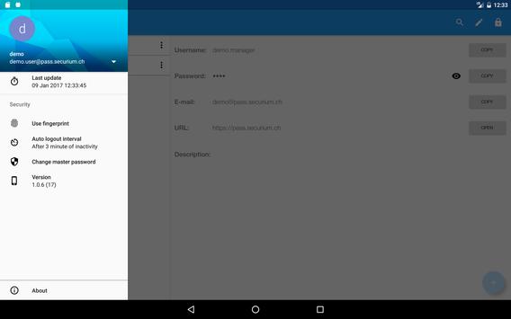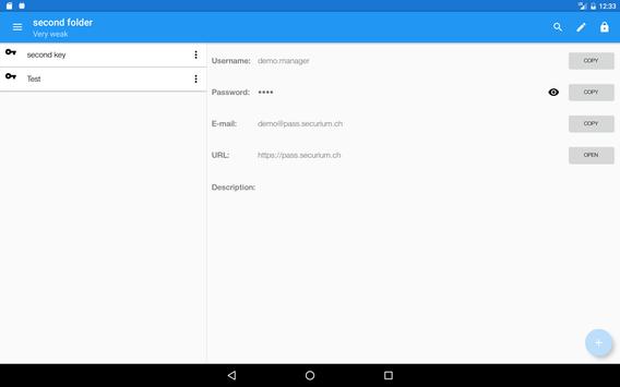 With TeamPass Lite for Android you can access your TeamPass Instance from your mobile devices and view your passwords anytime and anywhere. This App can be used for mobile devices of all sizes. In the full version you can also delete, manage and create passwords.