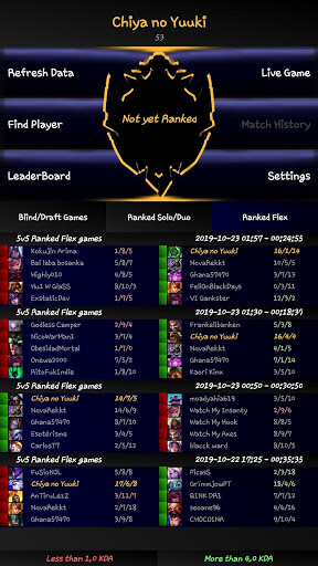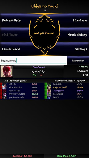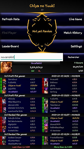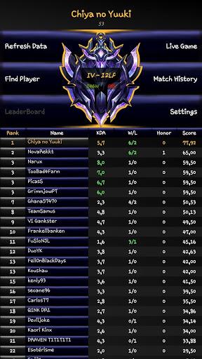 But that's not all! Through the LeaderBoard, you can find out who's been the most skilled individual you've played with, be it by highest KDA, Win Ratio or even honors in games. AND you get to honor people you've enjoyed playing with according to the match history system implemented in the app.