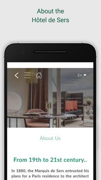 Use Hôtel de Sers App to discover our hotel services and our Paris local guide with tips from the hotel. Our app also lets you book local activities and services near the hotel for an amazing Paris experience. Not a guest yet? No problem, you can access all of our content and book your room directly via our app.