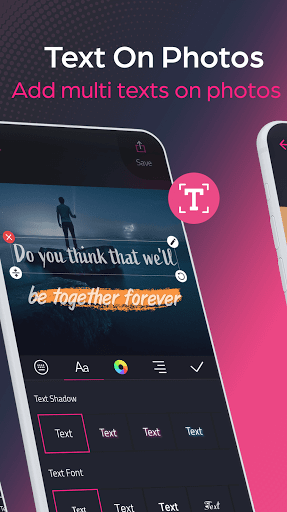 • Y Można konwertować inspirujące pomysły i słowa do wibrujących zdjęć z tekstem na fotografii w edytorze Photo Edytora Pro z zestawem czcionek arabskich i angielskich obsługiwanych przez wiele opcji dostosowywania, takich jak kontrolowanie rozmiaru tekstu, a także dodawanie cienia tekstu i dodawania Efekty tekstowe.