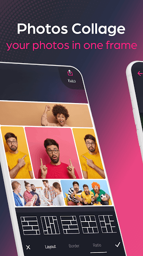• Zdjęcia kolaż w jednej ramce w łatwych krokach z różnymi szablonami i ramkami z cechą scalania zdjęć lub kolaży Zdjęcia, które zapewniamy Ci w programie Collage Maker - Picture Editor, ta funkcja umożliwia całkowicie sterowanie kolekcją obrazów, w których można zmienić rozmiary, zastosować filtry i dodać tekst łatwo.