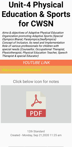 Ta aplikacja została specjalnie opracowana w celu zapewnienia notatek na temat najnowszego programu Syllabus wychowania fizycznego CBSE dla klasy XI i XII. Dostępne są jasne i autentyczne notatki każdego tematu wraz z linkami lekcji wideo. Aplikacja zapewnia wyjątkowe doświadczenie w zrozumieniu różnych tematów i wzmacniania wiedzy. Co więcej, to proces uczenia się przyjemnych.