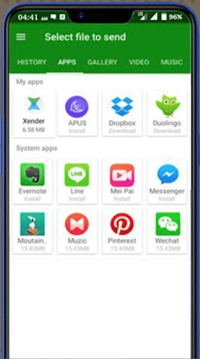 Xender file transfer Sharing photos, music, videos, apps, documents and any other file types of Unlimited file Size.