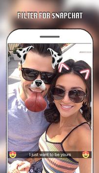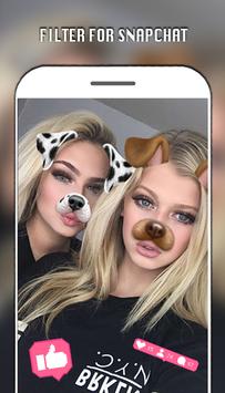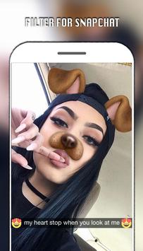 You can find everything you need in Filters for Snapchat us as cat face, doggy face, face filters for musically, funny styles, rainbow camera, heart camera and more...