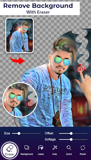 This photo editor has auto background eraser. It will help you to remove particular pixels from the background in single touch.
