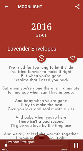Lyrics displayed by the fan app are property of their respective owners and may only be used for educational purposes. Please support the artists and their companies. Buy the original CDs, MP3s, videos and merchandise. The sole purpose of this application is to delight the end user. This lyrics application is not an official and does not include audio or video because we respect a work from the owner of official recording. You can get the audio at the official store.