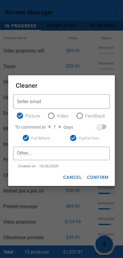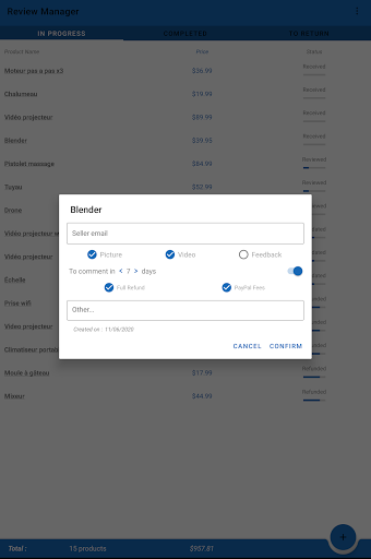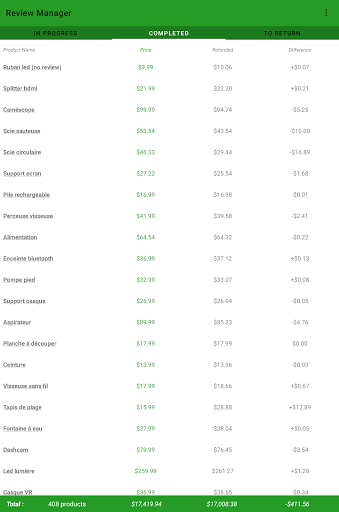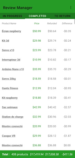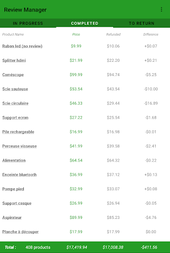 Łatwo dodaj, śledź i zaktualizuj swoje recenzje, utrzymując oko na refundacji Całkowita kwota zwrotna .