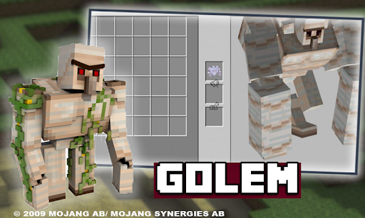 The most interesting fact and feature of our application and mob is that with a certain probability, you will be able to ride and even tame a golem so that it fights for you and leads the guard.