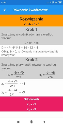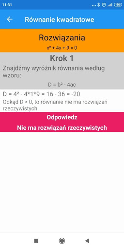 - obliczanie pierwiastków równania kwadratowego.