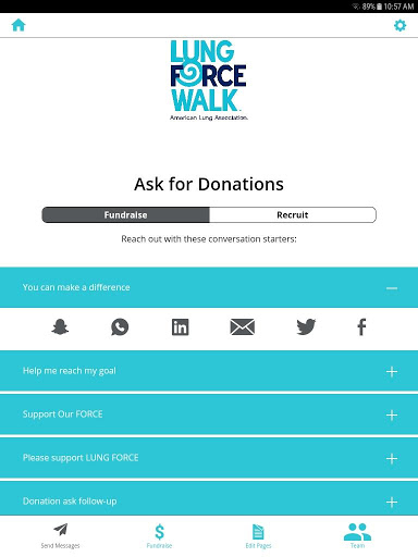 Wykonaj swoje fundusze i szkolenia w podróży z aplikacją mobilną Lung Force.Zaktualizuj stronę, wyślij e-maile, sprawdź postępy fundraisingowe i połącz się z Google Fit, aby śledzić swoją aktywność fizyczną - wszystko z dłoni.