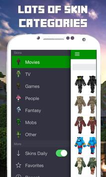Skins for Minecraft PE (Pocket Edition) allows you to choose and apply a skin to your Minecraft character for free with just the touch of a button! There are over 10,000 new handpicked skins to choose from, with more being added everyday.