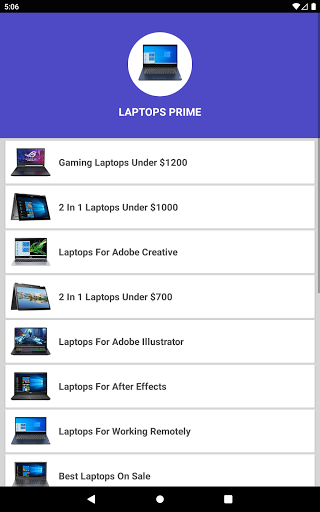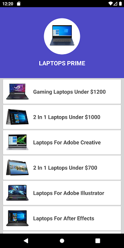 Aplikacja jest bardzo prosta i łatwa do uzyskania dostępu do wszystkich potrzebnych produktów bez rejestracji lub procesu uwierzytelniania użytkownika.Wystarczy zainstalować aplikację i otwórz swój piękny interfejs, w którym otrzymasz dostęp do wszystkich najlepszych głównych kategorii najlepszych laptopów. Największa wybierz kategorię własnego wyboru i wymagań, a następnie uzyskaj dostęp do strony produktu, z którym mnóstwo najlepszych laptopówPiękne obrazy i opis oraz cena są dostępne do wyboru łatwo.