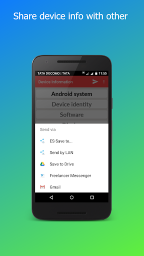 By Using Device Info application you can send all your Device info as a CSV file to anybody via different clients like Box, Gmail, Email, Drive, Skype, etc.