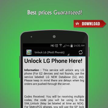 LG network unlock codes guaranteed! Generate unlock codes for your cellphone easy and fast. Best price guaranteed your device unlocked or your money back. We are sure to unlock any mobile cellphone using this service. Regardless the original carrier of your phone (not Verizon or Sprint)