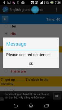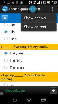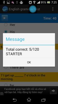 This application is designed to test your grammar knowledge. There are 120 multiple-choice questions in total, sorted by difficulty. The test is to be completed in 40 minutes. Based on the result, the taker will be classified into following levels: