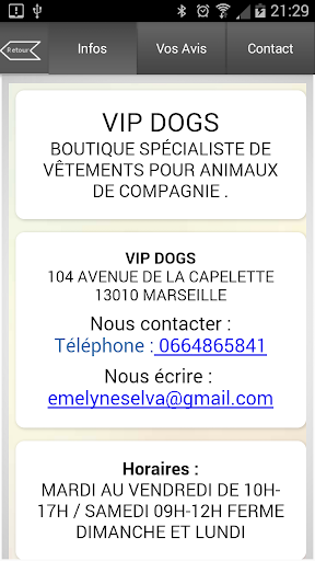 Vip Dogs est une enseigne située en plein cœur de la ville de Marseille, dans le quartier de la Capelette et saura satisfaire les chiens et autres animaux avec des prestations de bien être et de beauté tel que le toilettage avec tonte, bain et coiffure. La boutique propose également la vente d'accessoires avec du prêt à porter, des produits d' entretien mais aussi des objets divers pour satisfaire au mieux notre clientèle.