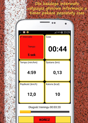 Podczas treningu, timer pokaże czas pozostały do końca interwału, a głos udzieli wskazówek do następnego.