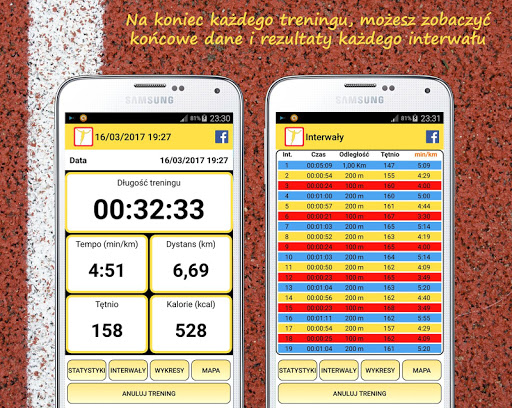 Aplikacja do intensywnych treningów, łączących interwały o dużym natężeniu z powolnymi etapami regeneracji, powtarzanych wiele razypodczas jednej sesji ćwiczeń.