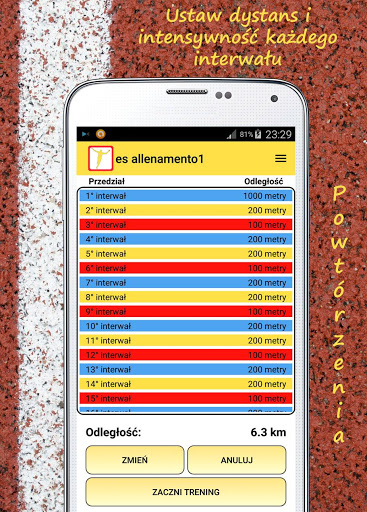 1 - Powtarzanie: ustaw okresy treningów wskazując dla każdego z nich odległość i intensywność.