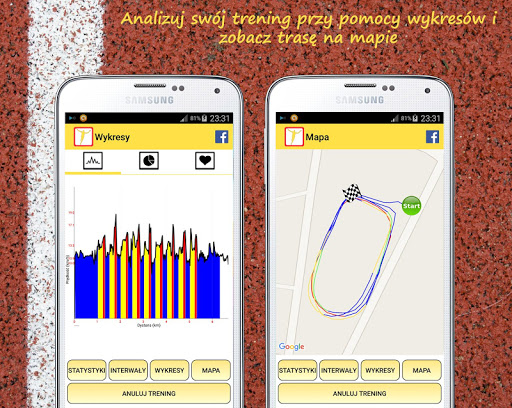 Dla każdego interwału możesz przeglądać dystans, czas trwania, prędkość i tempo. Oceniaj trening na bazie wykresów prędkości i tempa oraz śledź swoją trasę na mapie.