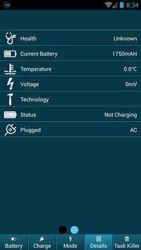 - Displays health Battery, Battery mAH current, temperature, voltage and battery state of life.