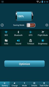 Battery Saver helps you turn off all the extra features like WiFi, Bluetooth, GPS, Sound and other energy applications on the device. App will alert