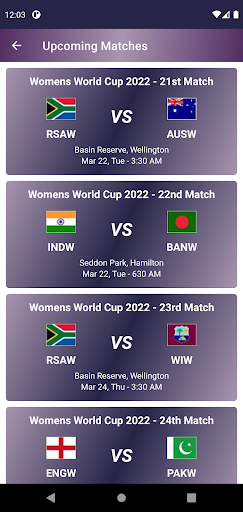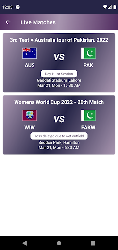 ● Get live Cricket match score updates on your mobile for all International matches, T20 leagues, Domestics matches, womens matches.