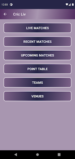 ● This application is providing to easily view the live score with live updated other menus like recent matches, upcoming matches(shcedules), point table, teams list, venues, stats records...etc...