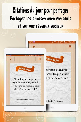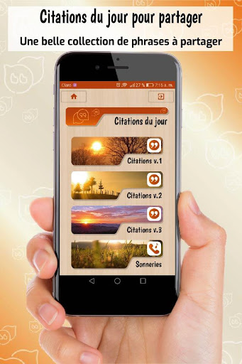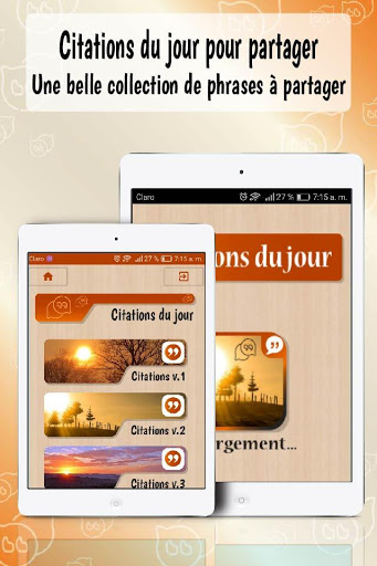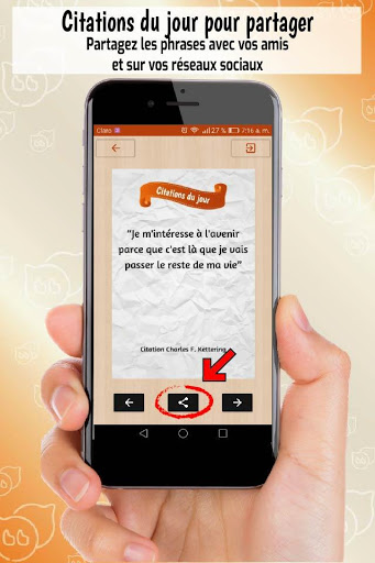 Téléchargez maintenant et complètement gratuit la nouvelle citations du jour gratuites (les plus belles citations) pour partager avec vos amis et vos proches (message du jour et pensee du jour inclus), disponible pour les appareils mobiles Android.