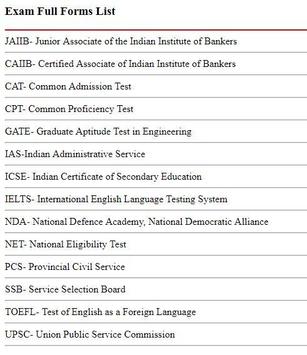 Exam Full Forms List
