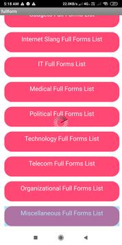 This application is all categorywise full forms list in offline mode.
