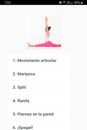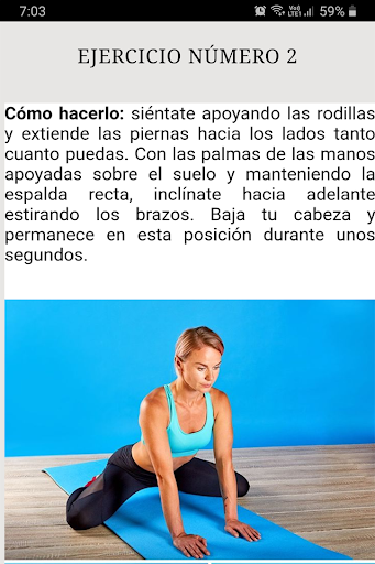 La app "Cómo Abrirse de Piernas - Guía para hacer Split" te ofrece una guía enteramente en español con todas las instrucciones que necesitas para entrenar tu flexibilidad hasta el punto de poder abrirte completamente de piernas. Aquí obtendrás un entrenamiento de apertura de piernas diseñado para que, tanto niños como adultos, puedan abrirse totalmente de piernas paso a paso, con métodos dinámicos que mejoran la flexibilidad con eficacia y consiguen resultados rápidos, con tan solo 10 o 20 minutos al día. Además, no hace falta ningún tipo de equipo.