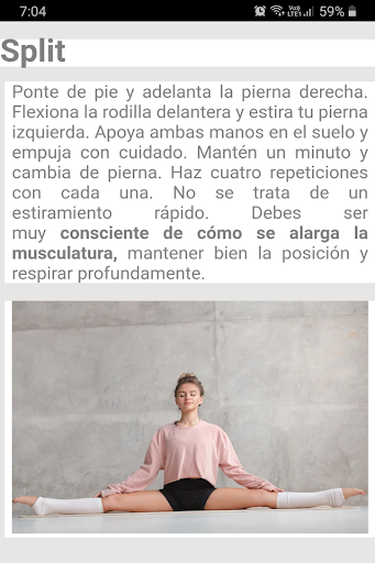 - Debes saber: por qué calentar primero, Spagat frontal y lateral, otras variantes de Spagat, etc.