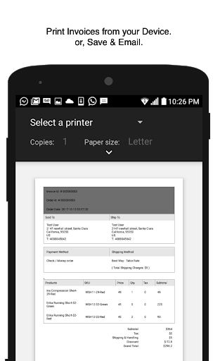 * Invoices. View and Print from mobile (only with Magento 2.x)