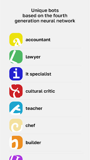 Yollu opiera się na sieci neuronowej czwartej generacji, która może szybko odpowiedzieć na każde z twoich pytań.rozmówcy spośród słynnych postaci i osobowości, gotowi na wszelkie rozmowy.- wielojęzyczne - Bez względu na to, jaki język piszesz, boty zrozumieją cię