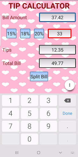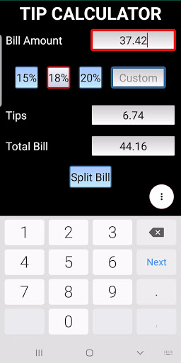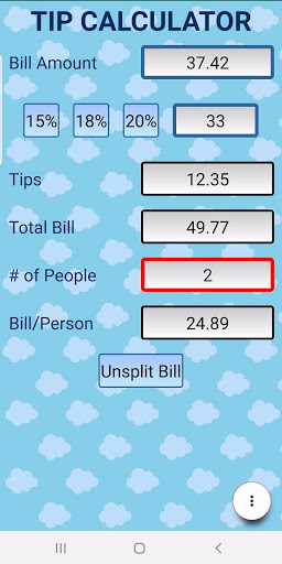 This application comes with the most commonly used tip percentages and the ability to even input a custom one. The final total can be split among your group.
