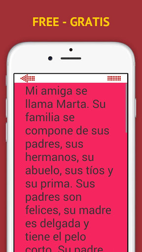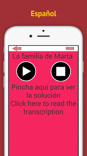Aplikacja stworzona przez hiszpańskich rodzimych głośników, dzięki czemu użytkownik może mieć słucach (audio i jego transkrypcje), mini-teksty w języku hiszpańskim w praktyce języka hiszpańskiego. Z dyktowania, napisz słowa, które przeczytali lub powiedzieli po hiszpańsku, a następnie sprawdzają dosłowne transkrypcje.