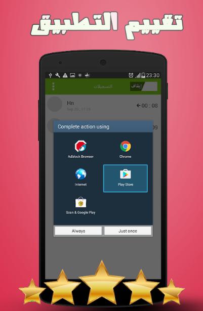 مشاركتها مع أصدقائك على الوتساب و مواقع التواصل الإجتماعي فتطبيق المسجل هو فريد من نوعه مقارنةً بتطبيقات مسجل المكالمات تلقائيا بسرية المسجلة للمكالمات الهاتفية لأن مسجل المكالمات بسيط و سهل الإستخدام و دا جودة عالية في التصميم و صور منوعة يومية