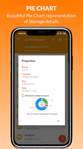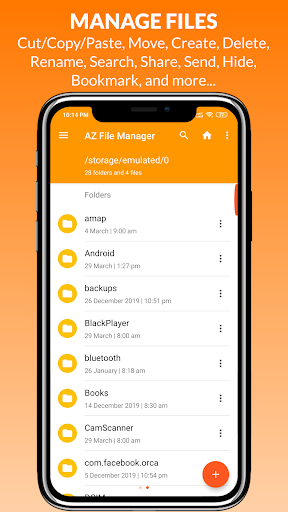 An easy to use File Explorer or File Browser used to effortlessly navigate and manage files and folders. Perform all the operations just like you do on your PC or Laptop will features like Multiple Select, Cut/Copy/Paste, Move, Create, Delete, Rename, Search, Share, Send, Hide, Create Shortcut, and Bookmark.