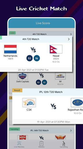 Aplikacja Cricket IPL zapewnia również wszystkie informacje o krykietach, oznacza to, że można również zobaczyć informacje na temat informacji krajowych, międzynarodowych i domastycznych. Ta aplikacja podąża również za serialami ODI, serialami T20, IPL (Indian Premier League) i wiele kolejnych wyników na żywo cieszyć piłką piłką.