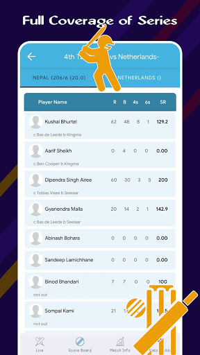 Ta aplikacja na żywo Cricke Scorre jest zawierać piłkę przez wynik piłki, całkowitym zasięgiem serii meczowych, deatil odtwarzacza i wiele innych.