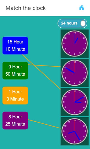 dzieci / dzieci mogą przeciągać czas od lewej, aby dopasować prawy zegar.Jeśli jest źle w miejscu docelowym, zostanie powrócony, a jeśli ma rację, linia zostanie wyciągnięta, a audio czasu zostanie odtworzona.