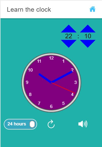 Dzieci / dzieci mogą nauczyć się czasu, naciskając ikonę dźwiękową, a także mogą uczyć się w 12 godzinie i 24 godzinnym formacie.
